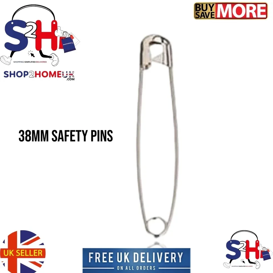Safety Pins 38mm Stainless Steel Safety Pins, Metal Silver Safety Pins for Clothing Art Craft Sewing Making